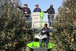 針對(duì)果樹整枝修剪、花果管理、采收運(yùn)輸?shù)拳h(huán)節(jié)和農(nóng)藝要求,研制果園采摘平臺(tái),重點(diǎn)解決農(nóng)機(jī)農(nóng)藝整機(jī)配置、升降和伸展、傾角(坡地)和人機(jī)安全等技術(shù)難題,開發(fā)了輪式和履帶式輕便型、多動(dòng)能型果園作業(yè)平臺(tái),果園機(jī)械全液壓驅(qū)動(dòng),配有電動(dòng)剪、采摘袋、標(biāo)準(zhǔn)果箱等功能裝置。